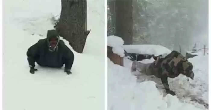 Keywords: BSF jawan completes 47 push ups within 40 seconds in biting cold weather, Newdelhi, National, Top-Headlines, News, Cold, Snow Fall, Army, Weather, Push up.