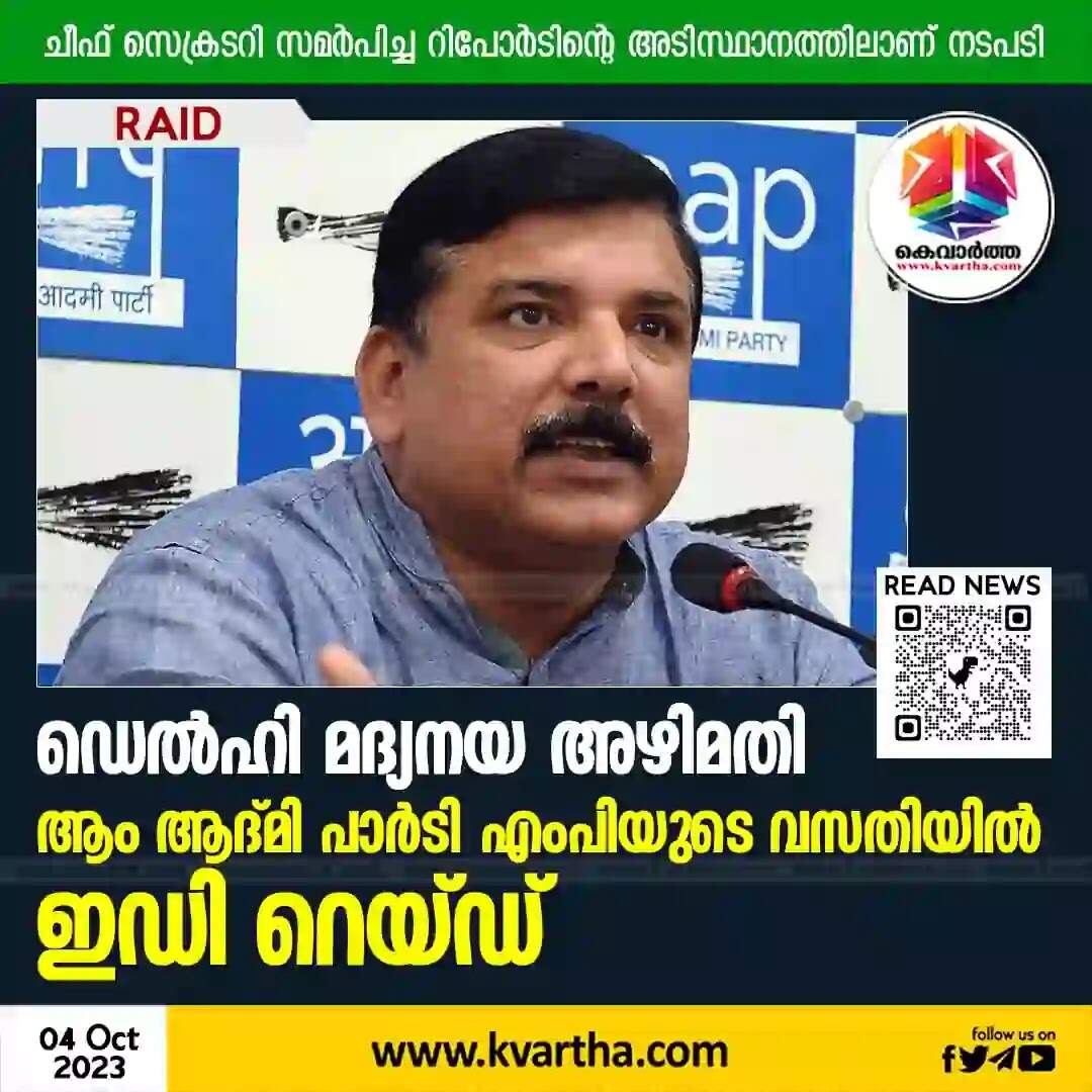 Raid | ഡെല്ഹി മദ്യനയ അഴിമതി: ആം ആദ്മി പാര്ടി എംപിയുടെ വസതിയില് ഇഡി റെയ്ഡ്