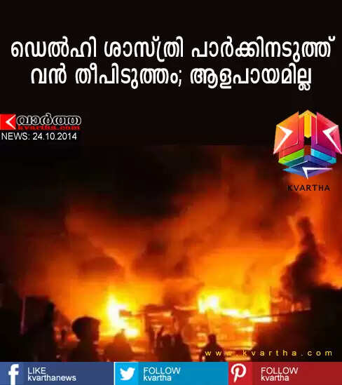 ഡെല്ഹി: (www.kvartha.com 24.10.2014) ഡെല്ഹിയില് ശാസ്ത്രി പാര്ക്കിനടുത്ത ചേരിയില് വന് അഗ്നിബാധ. ദീപാവലി ആഘോഷത്തോടനുബന്ധിച്ച് പടക്കം പൊട്ടിച്ചതാണ് അഗ്നിബാധയ്ക്ക് കാരണം. വെള്ളിയാഴ്ച രാവിലെയാണ് സംഭവം. സ്ഥലത്ത് 13 ഫയര് എഞ്ചിനുകള് തീ അണയക്കാനുള്ള ശ്രമങ്ങള് നടത്തുകയാണ്.
