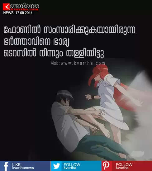 ഫോണില്‍ സംസാരിക്കുകയായിരുന്ന ഭര്‍ത്താവിനെ ഭാര്യ ടെറസില്‍ നിന്നും തള്ളിയിട്ടു