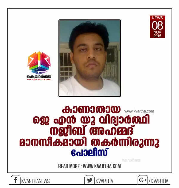 കാണാതായ ജെ എന് യു വിദ്യാര്ത്ഥി നജീബ് അഹമ്മദ് മാനസീകമായി തകര്ന്നിരുന്നു: പോലീസ്