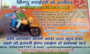 New Delhi: In what may stoke controversy, a poster warning against ‘Love Jihad’ appeared in the premises of the BJP’s national headquarters in Delhi on Monday.