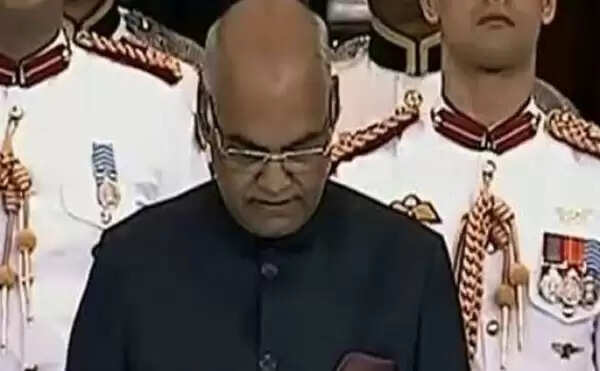 12.10ന് രാജ്യത്തിന്റെ പുതിയ പ്രഥമപൗരനായി കോവിന്ദ് സത്യവാചകം ചൊല്ലി. സത്യപ്രതിജ്ഞയ്ക്കുശേഷം വേദിയുടെ മധ്യഇരിപ്പിടത്തില്‍ നിന്നു പ്രണബ് മുഖര്‍ജി മാറുകയും ആ ഇരിപ്പിടത്തിലേക്ക് കോവിന്ദ് ഇരിക്കുകയും ചെയ്തു. കോവിന്ദിന്റെ ഇരിപ്പിടത്തിലേക്ക് പ്രണബും മാറി.