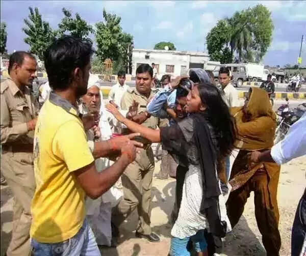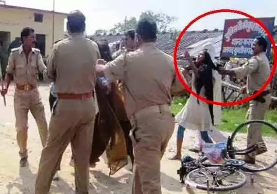 SUMMARY: Kushinagar(UP): Policemen in Kushinagar, eastern UP, on Sunday grabbed two sisters by their hair and beat them up mercilessly inside the police station.