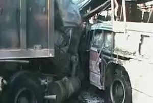 സഞ്ചൂറില് നിന്നും ബാരമറിലേയ്ക്ക് പോവുകയായിരുന്ന ബസാണ് ട്രക്കുമായി കൂട്ടിയിടിച്ചത്. അഗ്നിശമന സേനയുടേയും നാട്ടുകാരുടേയും പരിശ്രമഫലമായാണ് തീയണച്ചത്. മൃതദേഹങ്ങള് ജില്ലാ ആശുപത്രിയിലേയ്ക്ക് മാറ്റി.