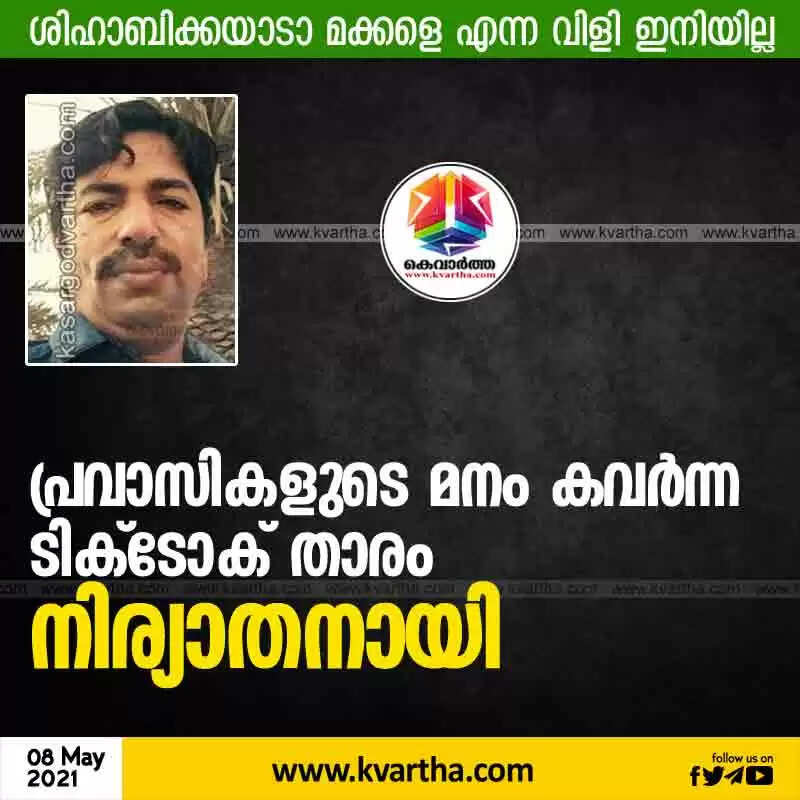 ദുബൈ: (www.kvartha.com 08.05.2021) ടിക്ടോകിലൂടെ പ്രവാസികളുടെ മനം കവർന്ന ആലപ്പുഴ പുന്തല സ്വദേശി ശിഹാബ് മരണപ്പെട്ടു. വെള്ളിയാഴ്ച രാത്രി ഉമ്മുൽ ഖുവൈനിൽ വെച്ചായിരുന്നു മരണം. നെഞ്ച് വേദനയെ തുടർന്ന് ആശുപത്രിയിൽ പ്രവേശിപ്പിച്ചെങ്കിലും ജീവൻ രക്ഷിക്കാനായില്ല.