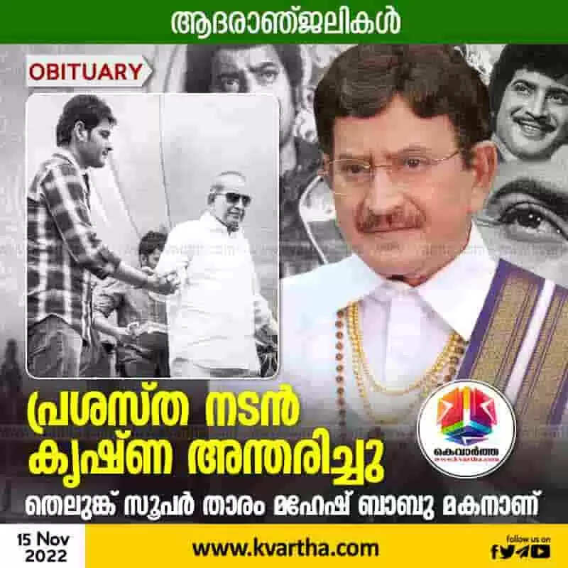 Krishna | പ്രശസ്ത നടന് കൃഷ്ണ അന്തരിച്ചു; തെലുങ്ക് സൂപര് താരം മഹേഷ് ബാബു മകനാണ്