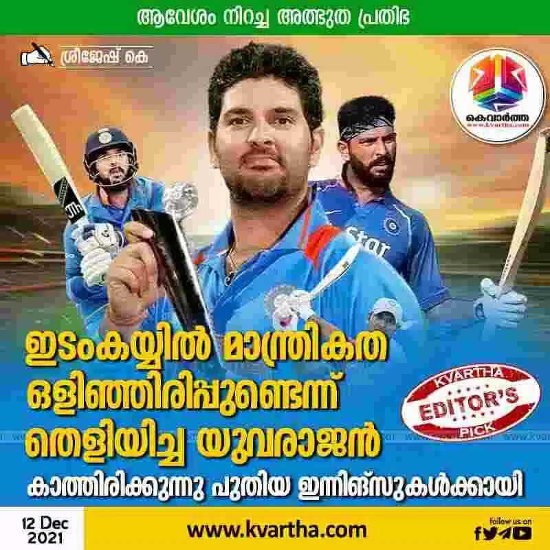 (www.kvartha.com 12.12.2021) അയാളുടെ വരവിനായി ഗ്യാലറി മൊത്തം കാത്തിരിക്കുമായിരുന്നു, ആ ബാറ്റിൽ നിന്ന് വെടിക്കെട്ട് പ്രകടനത്തിനായി അവർ കണ്ണിമ ചിമ്മാതെ നോക്കുകയായിരുന്നു. അത്രയ്ക്കും ആവേശമായിരുന്നു ഒരു കാലത്ത് ആ അത്ഭുത പ്രതിഭ. ജേഴ്സി നമ്പർ 12, പേര് യുവരാജ്.. മുഴുവൻ പേര് യുവരാജ് സിംഗ്. ലോകം കണ്ട എക്കാലത്തെയും മികച്ച ഓൾ റൗണ്ടർമാരിൽ ഒരാൾ. ടീം ഇന്ത്യയ്ക്ക് അയാൾ എല്ലാമായിരുന്നു. ബൗളിംഗിലും ബാറ്റിംഗിലും ഫീൽഡിങ്ങിലും തന്റെ വ്യക്തിമുദ്ര പതിപ്പിച്ച പടനായകൻ. ഇന്ത്യൻ ജനതയുടെ മനസ്സിൽ യുവി ഒരു വികാരം ആയി മാറി. ഇന്ത്യൻ മതിലുകളിൽ അയാളുടെ പേര് ആലേഖനം ചെയ്യപ്പെട്ടു.