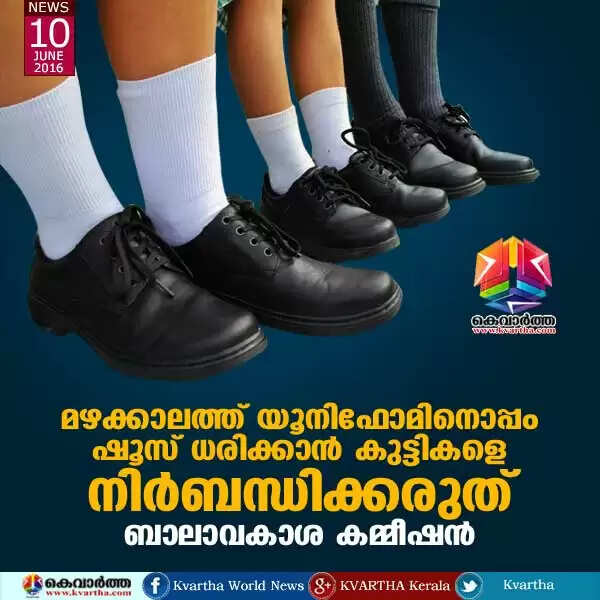 മഴക്കാലത്ത് യൂനിഫോമിനൊപ്പം ഷൂസ് ധരിക്കാന് കുട്ടികളെ നിര്ബന്ധിക്കരുത്: ബാലാവകാശ കമ്മീഷന്