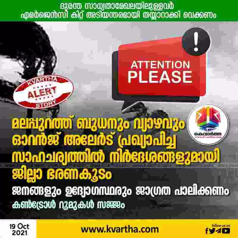 Keywords: Kerala, News, Malappuram, Top-Headlines, Rain, Alerts, District Collector, Orange alert; Malappuram District administration issued instructions to public.