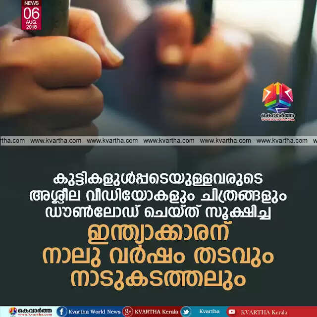 കുട്ടികളുള്‍പ്പടെയുള്ളവരുടെ അശ്ലീല വീഡിയോകളും ചിത്രങ്ങളും ഡൗണ്‍ലോഡ് ചെയ്ത് സൂക്ഷിച്ച ഇന്ത്യാക്കാരന് നാലു വര്‍ഷം തടവും നാടുകടത്തലും