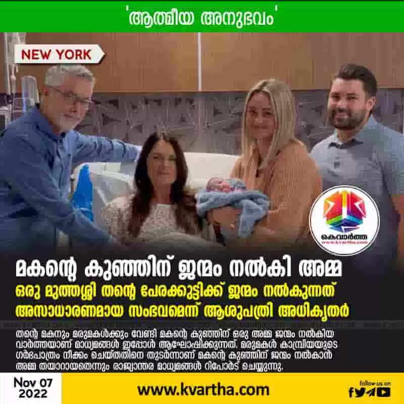 Birth Child | ആത്മീയ അനുഭവം; മകന്റെ കുഞ്ഞിന് ജന്മം നല്കി അമ്മ; ഒരു മുത്തശ്ശി തന്റെ പേരക്കുട്ടിക്ക് ജന്മം നല്കുന്നത് അസാധാരണമായ സംഭവമെന്ന് ആശുപത്രി അധികൃതര്