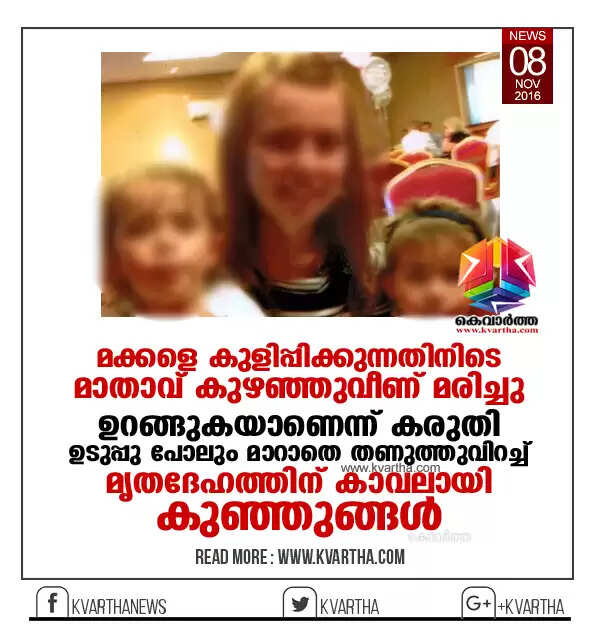 ലണ്ടന്: (www.kvartha.com 08.11.2016) മക്കളെ കുളിപ്പിക്കുന്നതിനിടെ മാതാവ് കുഴഞ്ഞുവീണ് മരിച്ചു. ഉറങ്ങുകയാണെന്ന് കരുതി ഉടുപ്പു പോലും മാറാതെ തണുത്തുവിറച്ച് ഒരു രാത്രി മുഴുവന് മൃതദേഹത്തിന് കാവലായി നിന്നു രണ്ടു കുരുന്നുകള്.
