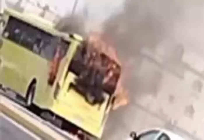 Keywords: Running school bus caught fire in Saudi Al-Hasa, Saudi Arabia, News, Running School Bus, Caught Fire, Saudi Al-Hasa, Girl Students, Driver, Short Circuit, World News.