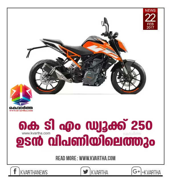 ന്യൂഡൽഹി: (www.kvartha.com 22.02.2017) യുവാക്കളുടെ ഹരമായ ഡ്യൂക്ക് ബൈക്കിന്റെ പുതിയ പതിപ്പ് ഡ്യൂക്ക് 250 ഉടൻ തന്നെ പുറത്തിറക്കുമെന്ന് കമ്പനി വ്യക്തമാക്കി